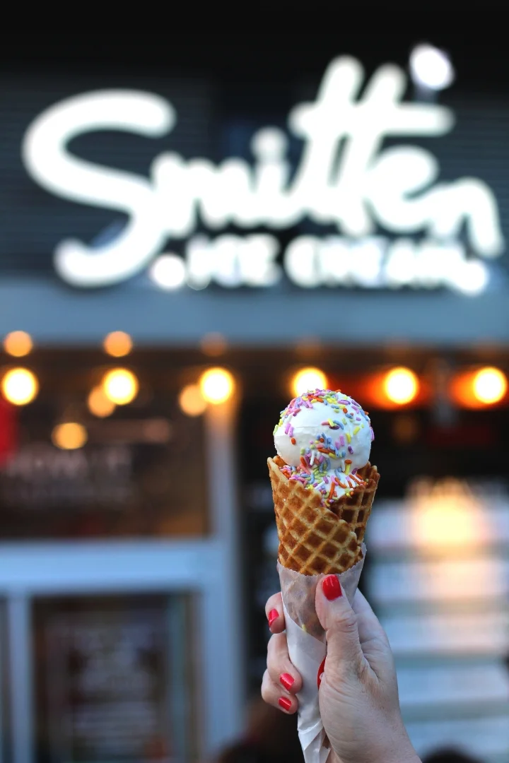 When it comes to ice cream, I am a vanilla and rainbow sprinkles girl! While Smitten does have some fancier options like earl grey ice cream, I had to stick with the basics. Not only am I impressed by their flavors, which are few but powerful- they also have waffle cups! Choose between waffles cones, waffle cups, or just plain old cups, but either way it is all super tasty.